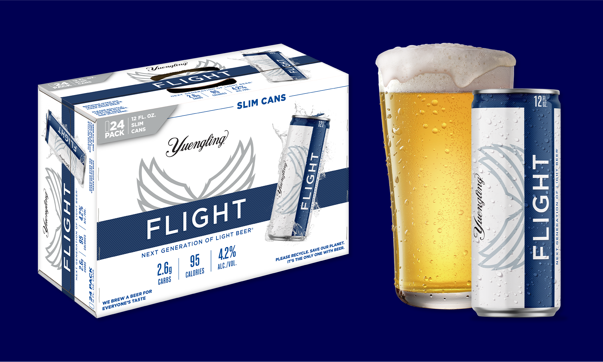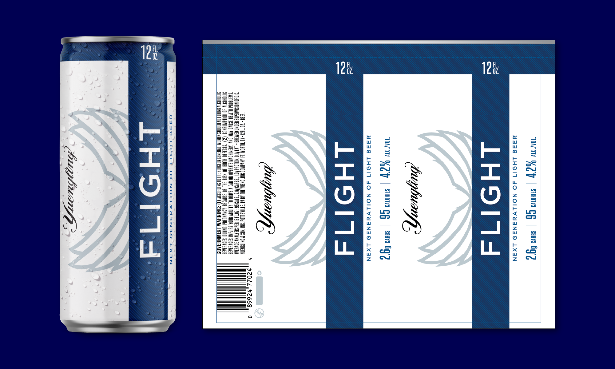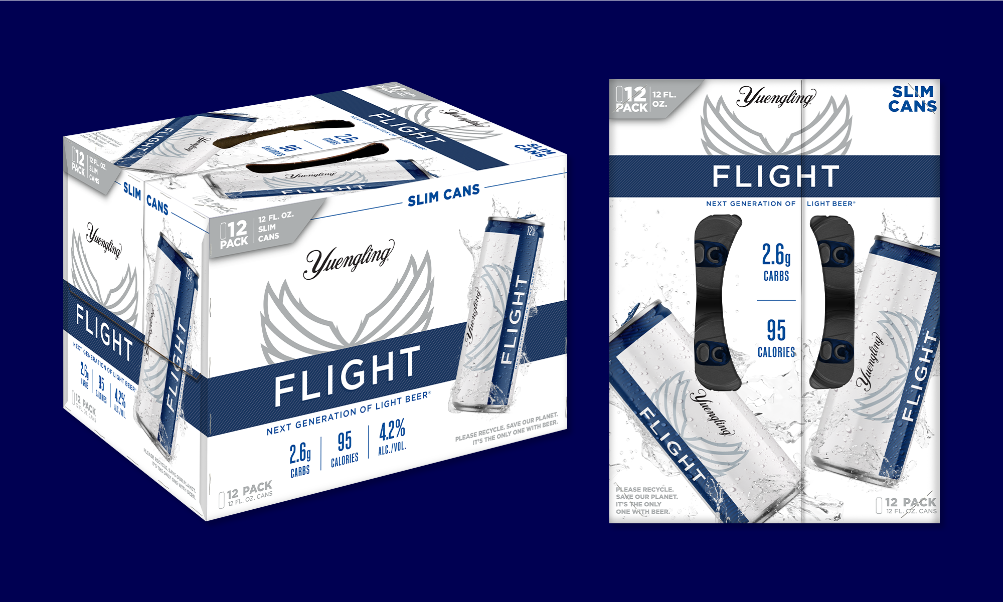 Flight by Yuengling is a refreshing, easy-to-drink light beer that offers a smooth, crisp taste without the heavy calories. After successfully launching Flight in 12-pack bottles, the brand expanded its packaging formats to include 12oz slim cans to meet diverse consumer preferences. Based on extensive in-market research on competitors and how their packs are displayed on shelves, I adapted Flight by Yuengling's clean design to a 12-pack, 24-pack, and 12oz slim can while showcasing the brand's splash of refreshment. Product photography by Kris Boxter.
